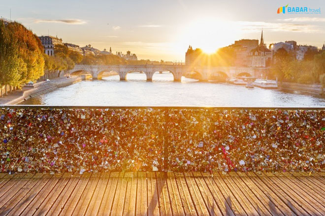 | Cây cầu Tình Yêu trên dòng sông Seine (Paris, Pháp). |