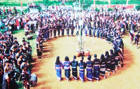 | Những cô gái Gia-rai trong vòng xoang ngày hội. |