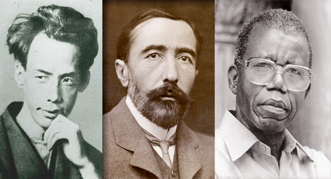 | Nhà văn Akutagawa Ryunosuke, nhà văn Joseph Conrad và nhà văn Chinua Achebe. |