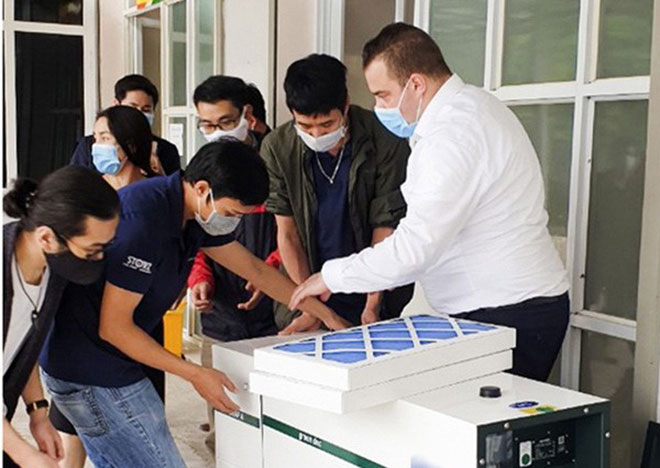 | Ê kíp cố vấn của Hà Anh Tuấn tham gia lắp phòng cách ly áp lực âm. |