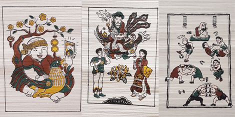 | Bộ tranh Đông Hồ đương đại hóa của nhóm họa sĩ 9x dựa trên các bức tranh kinh điển. |