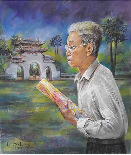 Cờ đỏ sao vàng bay phấp phới sau lái chiếc tàu tuần biển của Pháp mà ta đã sung công. Vài toán thanh niên xếp hàng hai, đang tập đi, với phong cách quân đội chính quy, vài cậu xách lựu đạn nội hóa hình bầu dục, đúc bằng đồng, phía sau có cái đuôi khá dài. Khi ném, nắm cái đuôi như nắm sợi dây, quay tròn, lấy trớn rồi buông tay, trái lựu đạn sẽ đi xa và rơi cầu vồng, nhờ cái đuôi điều chỉnh. Họ hát “nào anh em ta cùng nhau xông pha lên đàng”, mặc quần cụt, chân mang dép bằng nhựa cao su còn tươi, chưa sơ chế”...