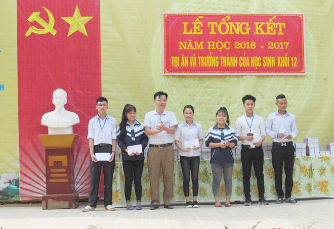 | Hãy để giấy khen là chứng nhận thiêng liêng. Trong ảnh: Học sinh THPT Bắc Yên Thành nhận khen thưởng. |