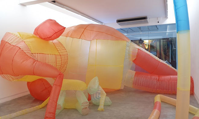 | Một tác phẩm làm từ bao nilon trong triển lãm sắp đặt "Rồng rắn lên" của nghệ sĩ Trần Nguyễn Ưu Đàm. |