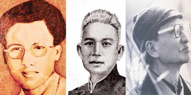 | Từ trái qua: Cố nhà thơ Hàn Mặc Tử, Cố nhà thơ Tản Đà, Cố nhà văn Nguyễn Tuân. |