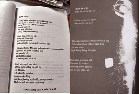| Bài thơ “Buổi sáng” của Phan Ngọc Thường Đoan và bài “Bạch Lộ” của Phan Huyền Thư có những đoạn giống y chang. |