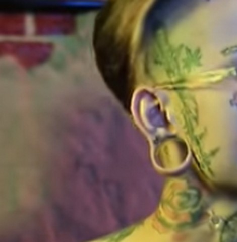 | Chiếc tai bị nong thành lỗ tròn khổng lồ. |