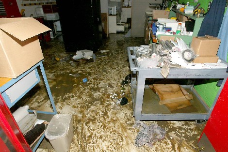 | Trận bão Isabel năm 2003 làm ngập nhiều phòng học và phòng thí nghiệm của Học viện Hải quân ở Maryland. Ảnh AP. |