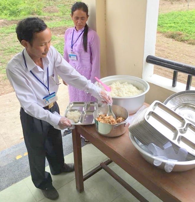 Để duy trì bếp ăn trưa theo hướng bền vững cho hơn 100 học sinh lớp 1 với cơm trắng, canh rau, cá hoặc thịt kho, mỗi ngày sẽ trích khoảng 650.000 đồng để nấu ăn. Các thầy, cô giáo trong trường bỏ công đi mua thực phẩm và nấu nướng. Như vậy, trừ những ngày nghỉ, trung bình mỗi tháng sẽ mất gần 15 triệu đồng tiền ăn cho các em.
