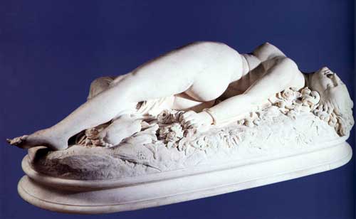 | Kiệt tác điêu khắc "Người phụ nữ bị rắn cắn" được sáng tạo vào năm 1847, lấy từ khuôn mẫu khỏa thân từ chính cơ thể của kỹ nữ Apollonie Sabatier. |