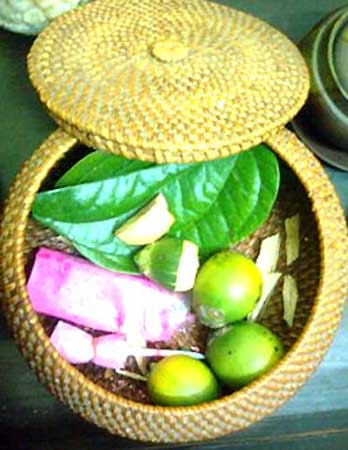 Tôi không nghĩ là về đây để học ăn trầu. Nhưng khi nghe mấy người trong làng say sưa với miếng trầu là đầu câu chuyện thế nên tôi không khỏi tò mò. Sao họ lại nghiện ăn trầu đến thế. Chắc phải là ngon lắm và ăn thế nào? Tôi tìm đến cụ ông Nguyễn Văn Phóng. Cụ khoe hàm răng chắc khỏe vì đã ăn trầu 80 năm qua.