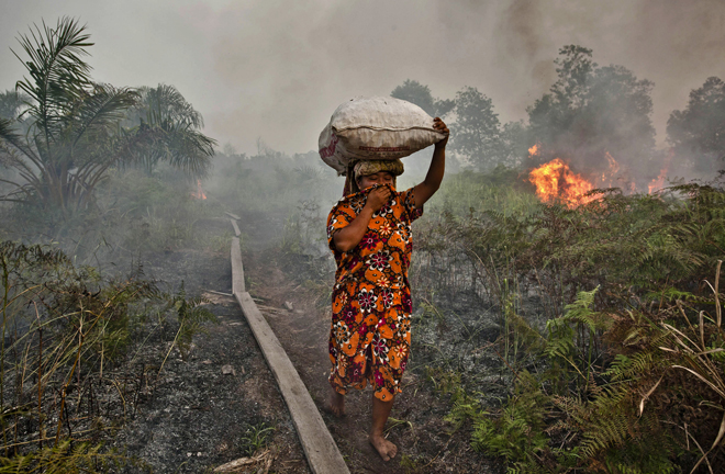 Việc chuyển đổi đất làm trầm trọng thêm những vụ cháy rừng vào mùa khô hàng năm, làm thoát ra lượng khí carbon khổng lồ trữ dưới than bùn. Nhiều vụ cháy rừng là do cố tình để “dọn sạch” thảm thực vật tự nhiên.