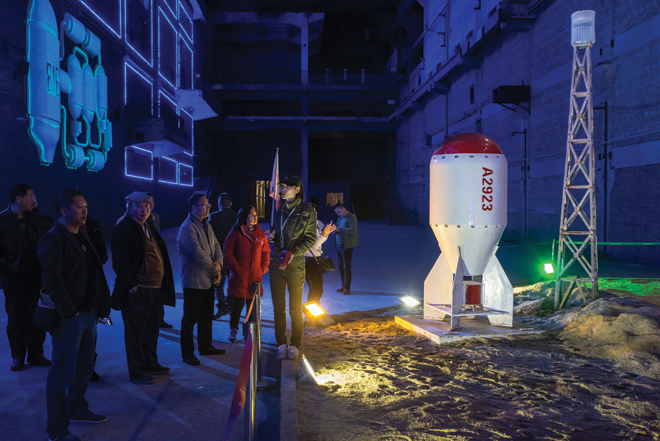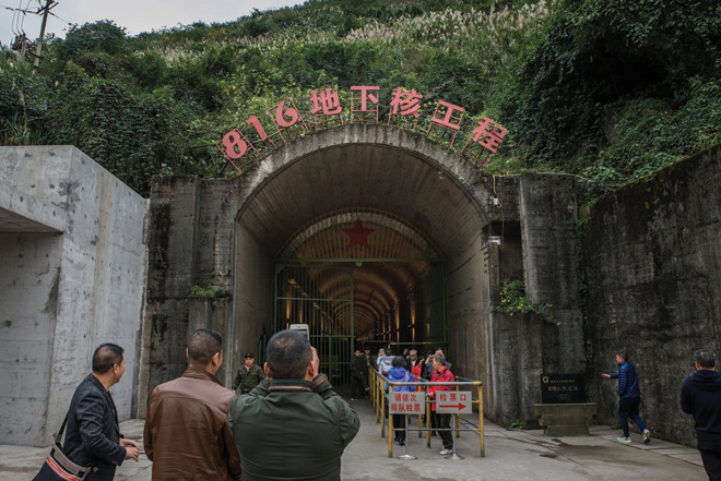 Ở chặng dừng đầu tiên của tour tham quan 90 phút này là một sảnh từng là cơ sở phát điện của nhà máy hạt nhân 816, hướng dẫn viên Qi Hong nói với khoảng 30 người Trung Quốc cao tuổi: hang động này không chỉ là nỗ lực của các công nhân,mà còn là một phần quan trọng trong lịch sử quốc phòng và phát triển hạt nhân của Trung Quốc.