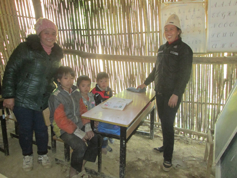 Sau khi đã leo qua những đỉnh núi, vượt những con dốc, xóm Lũng Oong hiện ra với những mái nhà đơn sơ nằm giữa những hốc đá lớn ở dưới chân núi. Ngôi trường tiểu học nằm ngay phía cuối làng với lá cờ đỏ sao vàng bay phấp phới trong thung lũng yên ắng, tĩnh mịch. Nghe chúng tôi giới thiệu, hai nữ giáo viên đang đứng ngoài trời sưởi nắng ấm ngạc nhiên và tỏ ra rất vui mừng vì đã mong muốn giới báo chí đến đây từ lâu.