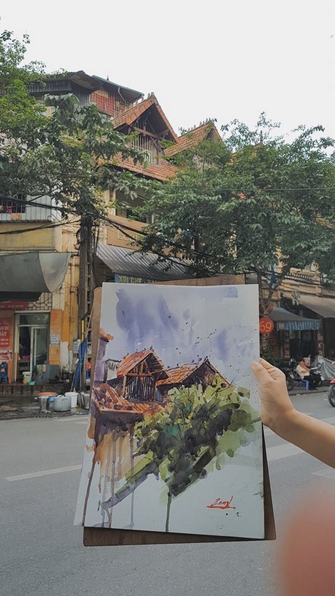 Chị kể: “Chúng tôi yêu vẽ, yêu nơi mình đang sống, yêu Hà Nội nên muốn lưu giữ bằng ký họa những gì đẹp đẽ đang còn lại đâu đó. Hà Nội ngày nay phát triển chóng mặt. Con người Hà Nội cũng thay đổi từ tính cách, văn hóa, lối sống và sinh hoạt. Chúng tôi vui vì được sống trên mảnh đất thấm đẫm giá trị lịch sử lâu đời nhưng cũng buồn vì sự mai một của các di tích, các làng nghề. Cái giá trị mất đi sẽ không bao giờ quay trở lại, thay vì nuối tiếc, chúng ta hãy gìn giữ những gì đang có, những giá trị rất riêng của Hà Nội mà không một đô thị nào có được”.
