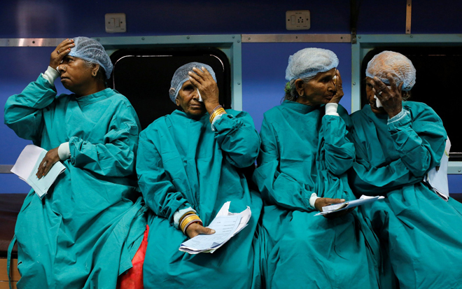 | Các bệnh nhân được mổ mắt trên tàu. |
