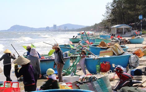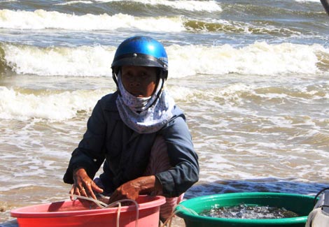 Thân hình nhỏ thó của chị như lẫn vào sóng biển. Chiếc nón lá cũ không đủ che mát khuôn mặt sạm đen vì nắng gió. Chị ngẩng đầu cười xởi lởi rồi mời chào tha thiết: "Cô chú mua cá à? Mua đi, tôi bán cho. Chỗ này còn hơn 2 ký, tôi lấy 80 ngàn thôi". Tiếng rao khàn đặc của người đàn bà góa đã trở thành âm thanh mưu sinh quen trên bờ cát trắng, trước biển cả mênh mông.