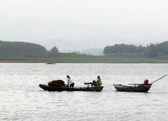 Mặt trời gác núi, bầy chim ríu rít gọi nhau về tổ là lúc những thuyền rọ lặng lẽ ra hồ. Theo chân anh Nông Văn Kính, thôn Cà Lồ, xã Xuân Lai, tôi ngồi lên chiếc thuyền nan đã có nhiều vết vá bằng xi măng. Chiếc thuyền tròng trành hướng ra hồ rộng.