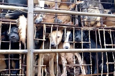 | Ánh mắt của các chú chó bị nhốt trong những chiếc lồng chật trên đường đưa đi giết mổ đã gây ám ảnh nhiều người. |