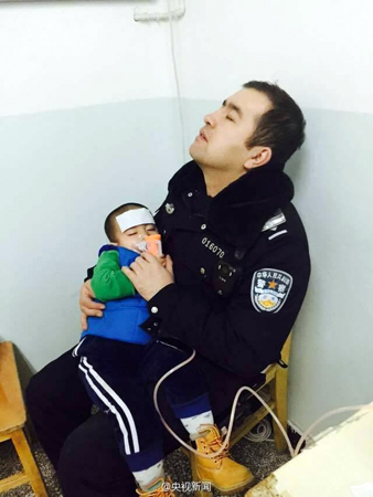 Vì nhiệm vụ cứu trợ người dân bị mắc kẹt do bão tuyết, cảnh sát Samirjan Abliz tại tỉnh Tân Cương, Trung Quốc đã buộc phải để con trai 2 tuổi đang ốm cho gia đình chăm sóc.