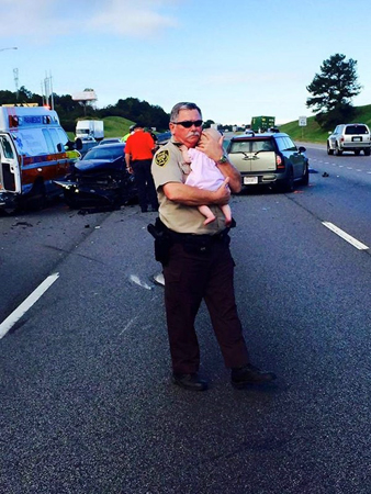 Một cảnh sát trưởng người Mỹ đã được vinh danh sau khi bức hình ông dỗ dành nạn nhân nhí trong vụ tai nạn đâm xe được lan truyền lên Internet. Mới đây, tại thành phố Leeds, Alabama, Mỹ đã xảy ra một vụ tai nạn giữa một xe cứu thương, một xe kéo và 3 xe hơi cá nhân khiến 4 người bị thương nặng. Và khi cảnh sát trưởng Ric Lindley có mặt tại khu vực hiện trường, ông đã có một hành động khiến cả thế giới cảm động.