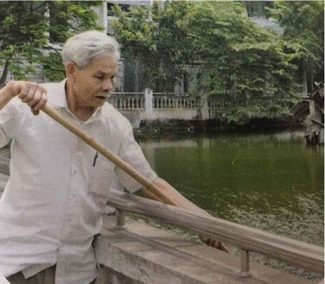 Cụ ông mà tôi gặp ở hồ Hữu Tiệp tên là Đỗ Sáng Luyện, cựu thanh niên xung phong phường Ngọc Hà. Chỉ với chiếc vợt dài 3m có lưới, ông thong thả làm công việc một cách cần mẫn, tỉ mẩn vớt từng chiếc túi nilon, từng cọng rác mà ai đó vô tình ném xuống.