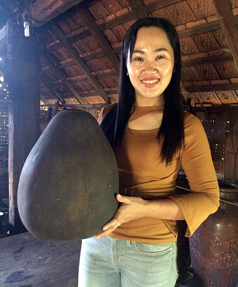 Chỉ vỏ trái bầu khô to như cái nồi cơm, Y Thim cho biết, vật này ông xin được trong xó bếp của một người dân. Đây là trái bầu to nhất từ trước đến nay, bụng bầu có sức chứa được khoảng 5 ký gạo, là vật không thể thiếu trong lễ hội cúng hồn lúa.