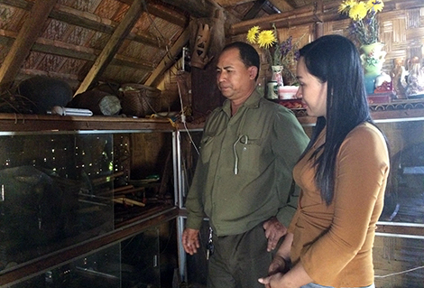 | Du khách tới tham quan "kho báu" của nghệ nhân Y Thim. |