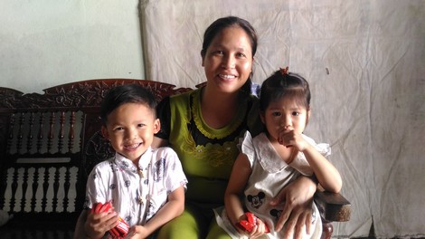 | Chị Thủy cùng 2 đứa con mình đang cưu mang. |