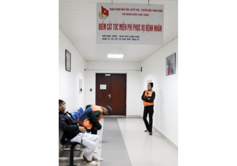 "Bệnh viện" là hai từ chẳng ai muốn nghĩ đến, bởi ở đó là bệnh tật, là đau đớn, là sự mệt mỏi. Thế nhưng các bác sĩ tại Viện Huyết học và Truyền máu Trung ương đang tạo nên một không gian bình yên, không khí ấm áp đến lạ kỳ. Tại hành lang tầng 7 của tòa nhà, chiều thứ 5 hàng tuần lúc nào cũng có người đi lại, chờ đợi với phong thái rất vui vẻ. Những tưởng các bệnh nhân xếp hàng khám bệnh, chờ phát thuốc nhưng kỳ thực họ chờ để đến lượt cắt tóc miễn phí. Chuyện thật như đùa ấy chẳng còn lạ lẫm gì với những bệnh nhân coi viện là nhà ở đây.