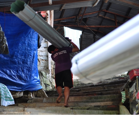 | Chiếc đòn gánh oằn cong trên lưng người. |