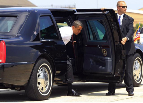 Tổng thống Obama trên xe “Quái thú” Cadillac One. |