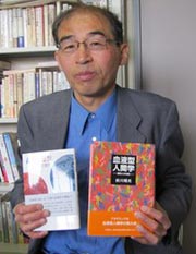 | Giáo sư Terumitsu Maekawa và những cuốn sách nghiên cứu về nhóm máu của ông. |