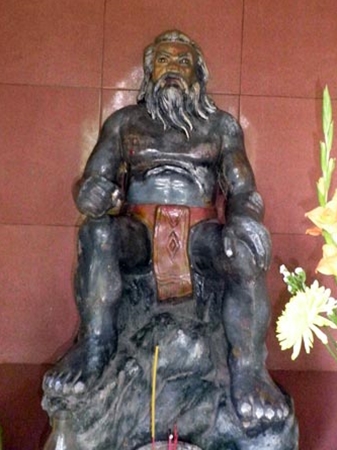 Già làng KPrụt dẫn chúng tôi đi thăm hai ông thần rừng. Một ông được tạc tượng bằng xi măng cốt thép tựa lưng trên núi đá trong khu du lịch sinh thái Forest city, một ông bằng đá cuội được gọt đẽo láng bóng ngồi chễm chệ trong miếu ven suối Đại Quay do nhà sư Minh Hạnh dựng lên cách đây hơn chục năm.