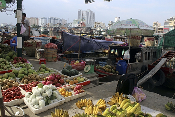 Những con thuyền ăm ắp trái cây miệt vườn từ miền Tây đổ bến, cảnh khuân vác, bán buôn, nhốn nháo trên bến dưới thuyền. Những đứa trẻ bé choắt, đen nhẻm ngồi trên mạn thuyền bốc cơm ăn, mắt hau háu nhìn theo các ông bố bà mẹ đang dỏng mắt, cong lưng mời gọi khách mua hàng.