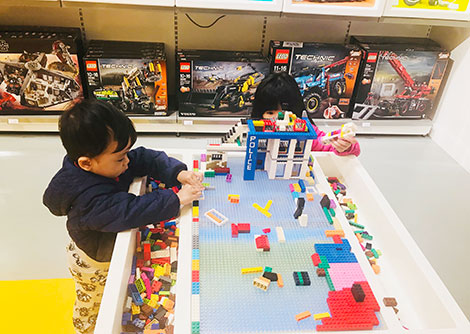 | Học sinh chơi lego miễn phí ở trung tâm thương mại. |