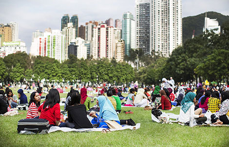 | Ngày nghỉ của những người giúp việc trong công viên Victoria Park. |