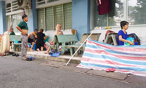 Người nhà của bệnh nhân mang trong mình căn bệnh ung thư quái ác nằm ngả lưng ở bất kỳ nơi đâu trong bệnh viện. Có thể đó là góc nhỏ hành lang, cầu thang bệnh viện hay thậm chí là lối đi dọc nhà vệ sinh công cộng. Dẫu ngày nắng hay ngày mưa, mùa xuân hay hạ…
