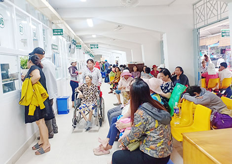 Bệnh nhân lo lắng, mỏi mệt đợi gọi tên.