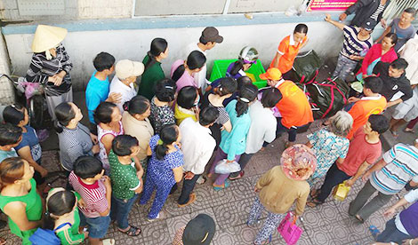 Xếp hàng chờ phát cơm từ thiện.