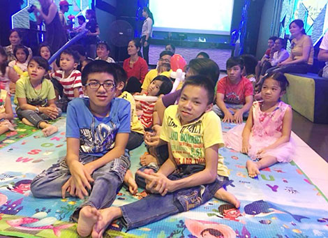 | Hiếu (bên phải) đã béo lên sau nhiều đợt điều trị tại một trung tâm ở Sài Gòn. |