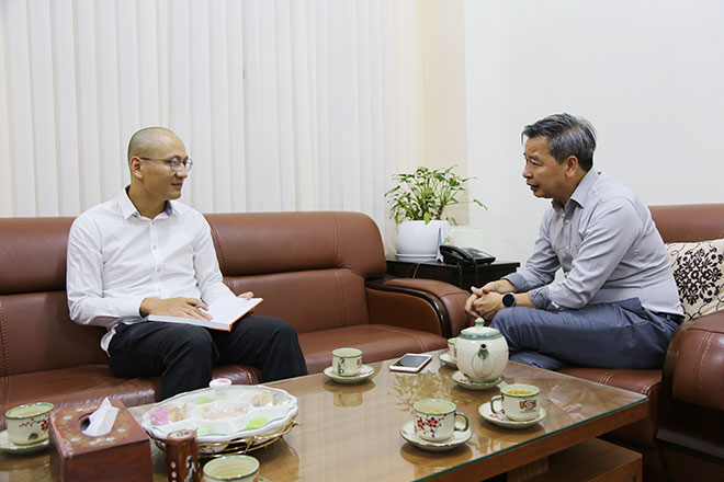 | Giáo sư, tiến sĩ Phạm Quang Minh trò chuyện cùng phóng viên Chuyên đề ANTG GT - CT. |