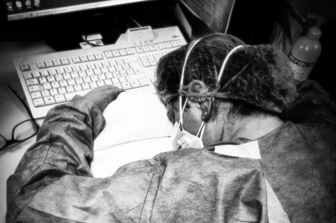 "Đó là khoảng 6h sáng nhưng tôi đã hoàn toàn kiệt quệ. Vẫn còn 1 tiếng nữa trước khi kết thúc ca trực, nhưng tôi đã gục ngã", y tá Elena Pagliarini kể về khoảnh khắc cô đổ gục trên bàn làm việc vì kiệt sức, khi đang trong kíp trực tại bệnh viện Cremona của Italia.