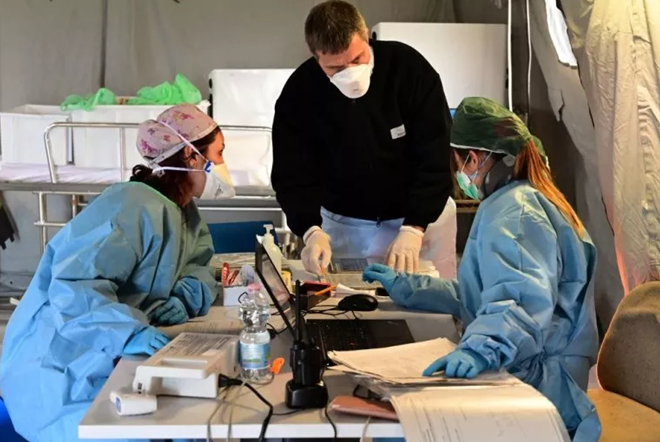 Theo New York Times, các bác sĩ tại Italia đã phải chuyển chế độ làm việc sang thời chiến. Điều đó đồng nghĩa với việc mặt nạ chống độc trở nên quý hiếm, các không gian từng bị giải tỏa được chuyển đổi thành khu vực chăm sóc đặc biệt, những lều bệnh dã chiến được dựng lên tại tất cả bệnh viện để điều trị bệnh nhân.
