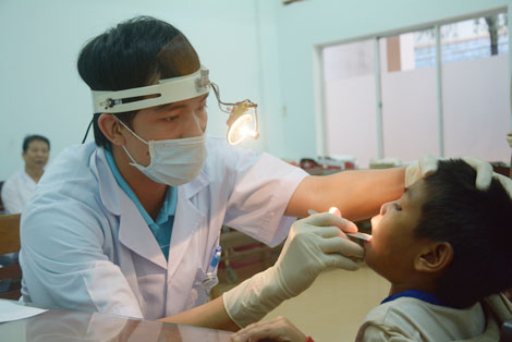 | Bác sĩ trẻ khám bệnh miễn phí trong một chương trình tình nguyện ở vùng sâu, vùng xa tỉnh Gia Lai. |
