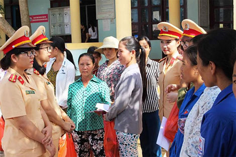 Cán bộ chiến sĩ nữ CSGT Quảng Bình thăm hỏi, tặng quà những phụ nữ khó khăn ở Quảng Hải trong ngày Phụ nữ Việt Nam.
