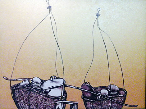 | Tác phẩm "Gánh hàng rong". Tranh sơn dầu của Quang Huân. |