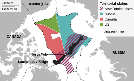 Cho tới nay, ngoài Nga và Mỹ, những quốc gia có biên giới giáp vòng Bắc Cực khác (bao gồm Canada, Đan Mạch và Na Uy) cũng đã tìm mọi cách chứng tỏ chủ quyền ở các phần đất tưởng đâu chỉ là "đặc khu" của loài gấu trắng.