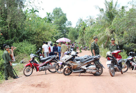 | Lực lượng chức năng phong tỏa hiện trường vụ tử vong do đuổi theo kẻ trộm chó ở Bình Dương. Ảnh: B.Sơn. |