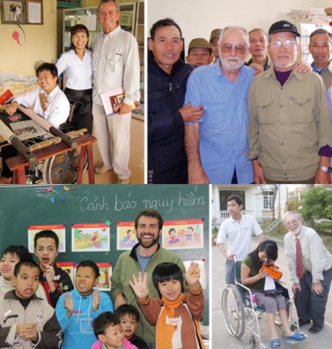| Một số hình ảnh ông Don Blackburn thăm Việt Nam trao quà nhân đạo cho trẻ em nhiễm chất độc da cam và cựu chiến binh Việt Nam ở làng Hữu nghị năm 2015 (Ảnh: Hội hữu nghị Don Blackburn). |